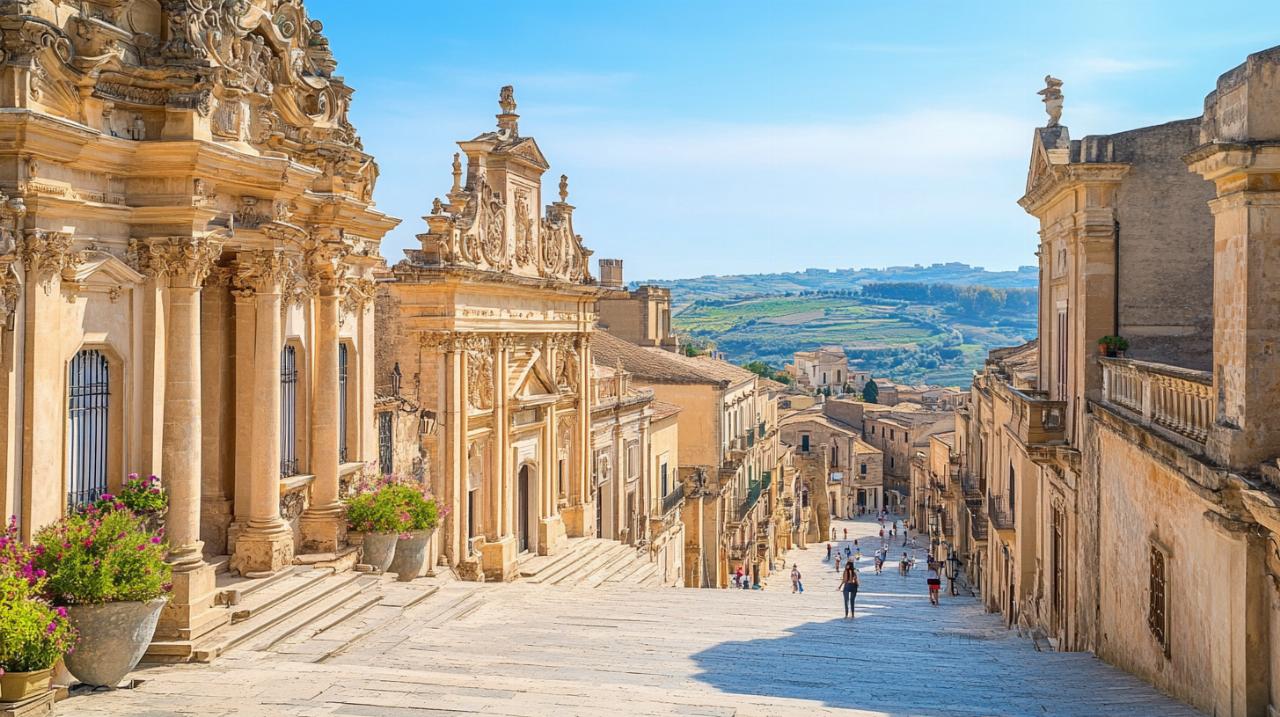 Les quatrième et cinquième jours permettent de rayonner entre Modica, célèbre pour son chocolat artisanal et ses églises baroques, Scicli avec sa Via Francesco Mormina Penna, et Ragusa divisée entre ses deux quartiers historiques. Chaque ville se trouve à proximité raisonnable des autres, rendant les déplacements fluides tout au long du parcours. Les plages siciliennes, situées à courte distance, offrent également des pauses rafraîchissantes entre les visites culturelles.